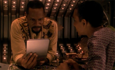 Not even in a romantic adventure on the open ocean (or the star-filled void) takes place in a vacuum, despite what physicists may tell us. (This is where I make a cheap joke about how Star Trek space battles always make noise.) There is inevitably a political dimension to a project like that. It’s to René Echevarria’s credit that he recognises this, and cleverly inverts the imperialist subtext to Heyerdahl’s original voyage. Sisko isn’t voyaging to reinforce a colonial fantasy; he’s working to disprove one.