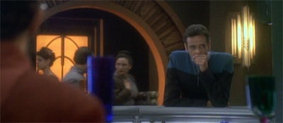 Similarly, the scene where Jake decides to join his father is also quite wonderful. Leanne – the character who appeared in Life Support – is only mentioned once, in a nice bit of continuity for the show. After Jake tells his father she is coming back from Bajor, she is not mentioned again. We’re not told that she cancelled the trip, or that she and Jake have broken up. Instead, Jake just decides to join his father for the trip.
