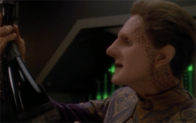 This is a weird character beat on a number of levels. After the fact, the script goes out of its way to reassure us that Curzon/Odo was probably being honest. Conversing with Dax at the end of the episode, he explains, “I never understood how much joy you humanoids experience in things like eating, drinking, staying up all night playing tongo.” So we can see why this might appeal to Odo. Unfortunately, there’s not nearly enough focus on Odo to justify this.