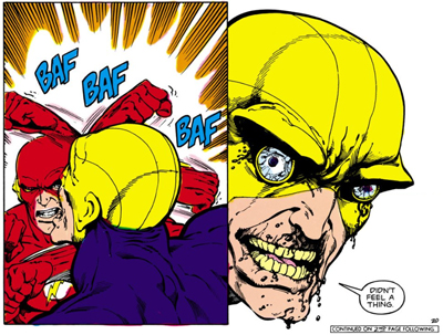 However, the costume cannot help but evoke the iconic design of the Reverse Flash. To be fair, the Speed Demon has lots of blue on his costume, but the visual connection between the Reverse Flash and the Speed Demon is quite clear. Both are characters that can move very quickly, and both are predominantly yellow. Both are primarily motivated by their own insane hatred of the Flash, rather than by any sense of material gain.