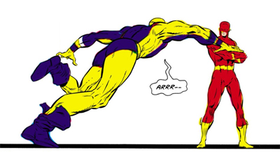 What is interesting is the design of the Speed Demon. The character is a super-speedster who dresses primarily in yellow. Indeed, he even arms himself with mustard gas so as to maintain the colour theme. Of course, this is just superhero colour theory in action. The Flash, being a hero, should have a primary colour theme – his colour is red. His enemies, being villains, should have secondary colour themes – and the opposite of red on the colour wheel is yellow. So it makes sense for the Speed Demon to dress in yellow.