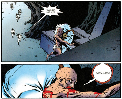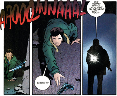 While Chris Carter has Mulder go through a very spiritual Native American healing ceremony in a way that feels very much in keeping with the way that the nineties New Age movement appropriated Native American iconography for its modern mysticism. In contrast, Petrucha and Adlard cast the man culturally appropriating Native American iconography as a psychotic cannibal. Enoch’s consumption of other identities to feed his own hunger is not merely literal. It’s a clever twist, on par with how Fresh Bones managed a culturally-sensitive voodoo story.