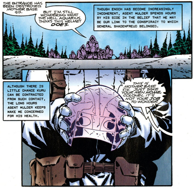 However, there’s a sense that Petrucha is having a great deal of fun here, throwing together all sorts of humbug to form a rather playful and absurd tapestry. While Enoch and Mulder are willing to buy into a theory based on debunked mythologies like silent cities and crystal skulls, the possibility of a connection between Atlantis and Aztlan is dismissed as ridiculous. The line between reality and fantasy is intentionally blurred, as reality itself seems to bend and distort.