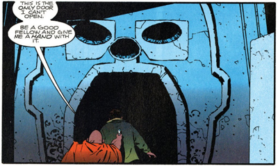 The other “fake” element that Petrucha and Adlard draw into Silent Cities of the Mind concerns the mysterious Ilbal. In keeping with the adventure’s Indiana Jones themes, the Ilbal could be described as “a transmitter… a radio for talking to [gods].” The design evokes the infamous crystal skulls that are associated with various new age philosophies, and have retroactively been associated with various indigenous people. The crystal skulls obviously played a part in Indiana Jones and the Kingdom of the Crystal Skull in 2008.