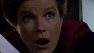 Twisted also features the reappearance of Ensign Baxter. The character appeared as the snotty patient in Eye of the Needle, and was mentioned (or would be mentioned) in passing during The 37’s. Based solely on these two appearances, Baxter may be the single most irritating recurring Starfleet officer in the history of the franchise. By this stage in the season, Seska had defected to the Kazon; Joe Carey had been consigned to the scrap heap barring flashback episodes and Friendship One. But the obnoxious middle-aged gym rat from Eye of the Needle gets to reappear?