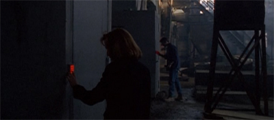 The pace disguises all manner of narrative short cuts that are taken here. Most obviously, Mulder and Scully’s journey seems incredibly linear for the infiltration of a vast sinister conspiracy against mankind. Mulder takes a photo to the Lone Gunmen; the Lone Gunmen point him to Victor Klemper; Klemper points them to the mine. Klemper even gives them the access code, making Mulder and Scully particularly reactive protagonists. Meanwhile, everything else tidies itself up around them.
