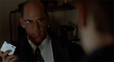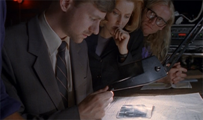 Paper Clip is also a great episode for supporting players William B. Davis and Mitch Pileggi. Davis plays the Cigarette-Smoking Man as a character watching the ground fall out from beneath him. There is something fascinating about seeing a character so omnipotent and powerful suddenly at a loss. Davis also does great work in the scene where the Cigarette-Smoking Man seems to get the upper hand again. Far from humbled, he quickly slips back into his usual routine.