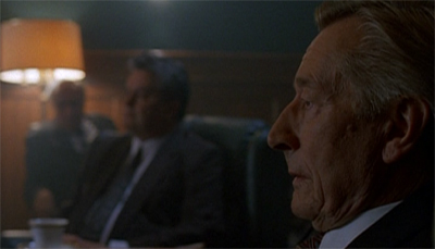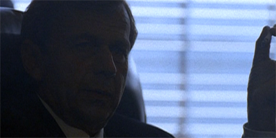 While Klemper seems quite happy to have an excuse to talk to an old acquaintance, the Well-Manicured Man is all business. When Klemper mentions the visit from Fox Mulder, the Well-Manicured Man ignores the invitation to reminisce about old times. “What did you tell him, Victor?” he demands, bluntly. Klemper doesn’t reply with an answer, but a joke. “I told him that you were the most venal man I’ve ever met.” Talking on the phone, the Well-Manicured Man is spared having to fake a smile.