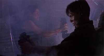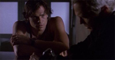 At the same time, Space: Above and Beyond seems to be a bit looser than it was in the pilot, evolving a bit. Mutiny gives the supporting cast more to do than they had in shows like The Farthest Man From Home or The Dark Side of the Sun, giving small character beats to Damphousse or Wang. Hawkes’ character also seems to be evolving away from the bad boy rebel introduced in the pilot, and more towards an innocent six-year-old child in the body of a twenty-four-year-old man. This is a much more interesting take on the character than stereotypical rebel without a cause.