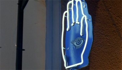 The image of an outstretched hand recurs throughout Clyde Bruckman’s Final Repose. The camera focuses on the neon palm sitting about the entrance to Madame Zelma’s studio. The first victim is a palm reader. The killer’s first act of violence is to desperately and urgently grab the hands of the palm reader, as if trying to steady himself as much as hold her in place. The bodies featured in Clyde Bruckman’s Final Repose also feature their hands outstretched.