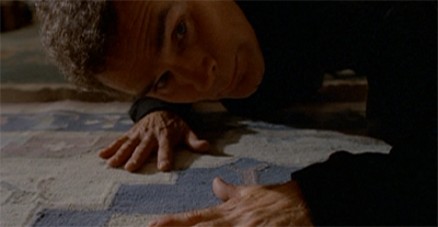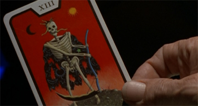 It is very easy to get caught up in the many big things about Clyde Bruckman’s Final Repose that work, and to lose sight of many of the brilliant smaller touches. For example, when Bruckman foresees the attack on Mulder in the kitchen, he is holding a letter that Mulder hasn’t touched yet – he is not foreseeing Mulder’s death at all, despite how it might seem. Similarly, there’s a beautifully clever cut from the “Death” tarrot card to a hand full of aces and eights – the infamous “dead man’s hand.”