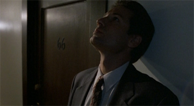 The characters pause to criticise the script at several points. When it turns out that the killer works at the hotel where Bruckman is hiding, he ponders, “What are the chances of that happening?” The killer agrees, “They’re astronomical! It’s beyond believability.” Bruckman is quick to jump to the defense of the plot point. “But not impossibility. I mean, after all, here we are.” Earlier, Mulder had talked about all the coincidences that exist as thematic echoes. “If coincidences are just coincidences, why do they feel so contrived?”