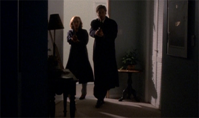 Still, the climax does make a point to have Incanto defeated by two women. Mulder runs off on a wild goose chase, leaving Scully and the victim alone in the apartment. When Incanto attacks, Scully fends him off and the victim shoots him with Scully’s gun. Sidelining Mulder is a smart move, as it allows Scully to get an action climax to herself. In the second season, Scully was largely a victim in shows like Ascension, Irresistible, The Calusari, End Game or Our Town.