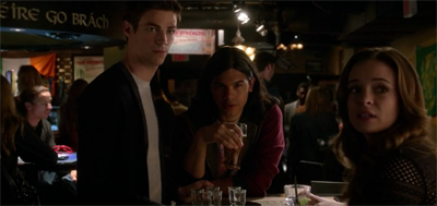 “I can’t get drunk,” Barry confesses to Caitlin and Cisco. “I’m only twenty-five and my drinking days are over.” It is presented as a very serious problem, serious enough to merit an affectionate “… and the gang hang out together” coda at the end of the episode. It leads to the revelation that Caitlin carries a blood testing kit in her purse… because she is a nerd, of coure. It’s an element that could very easily go horrible wrong, but The Flash pulls it off. The show earns moments like that with its “aw, shucks” optimism and earnestness.