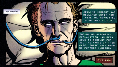 There is something quite clever in that twist. It’s great to have a story about a supernatural entity that appears to be something rational, only to become something paranormal again. It’s a solid structure, quite similar to the structure that Petrucha used in Circle Game, where the crop circles were revealed to be made by a young boy who was actually a ghost. Here, there’s a clever twist suggesting that the killer’s disembodied spirit is working hard to make the crimes appear like crimes committed by a real person, and thus “staging” a more rational crime to frame his mother.