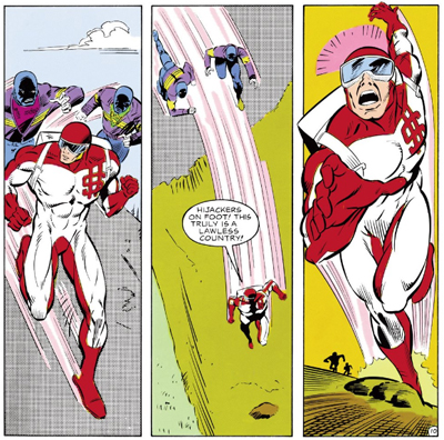 Velocity 9 is Mike Baron’s last story on The Flash. Indeed, it ends with the writer putting back the toys – Wally is informed that he is now broke, as if to underscore that this particular phase of the character’s history is coming to close. Hopefully the future holds brighter tidings.