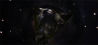 Apocrypha touches on this idea, albeit fleetingly. The shots of the black oil floating in the eyes of the host and entering the spaceship through the “eye” at the centre of the triangle are juxtaposed against the shots of Mulder and Scully searching the silos, as if wandering in a pupil staring up at space. This clever juxtaposition taps into the theory that humanity itself could be an “alien” lifeform, an offshoot of the “panspermia” school of biological though that would gain major traction in the nineties.