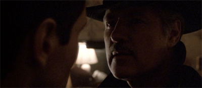 This is only one of a number of recurring hooks and callbacks that occur throughout the episode. The words “dead man” pop up repeatedly, as threats or concerns or simple statements of fact – somewhat ironic for an episode with so low a body count. These touches lend the story a fascinating recursive element – drawing attention to its nature as a story where these sorts of elements are not uncanny coincidences, but examples of craft.