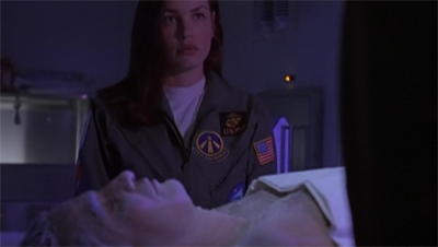With a central mystery driving the plot, Stardust feels very much like an episode of The X-Files that got ported over and filtered through the lens of Space: Above and Beyond. Shirley Walker’s soundtrack even adjusts, offering something that feels a little bit more like the music of Mark Snow than the show’s traditional old-fashioned bombast. There are cover-ups and secrets and misinformation scattered throughout Stardust, as the show engages more directly with conspiracy culture than it has at any point previously.