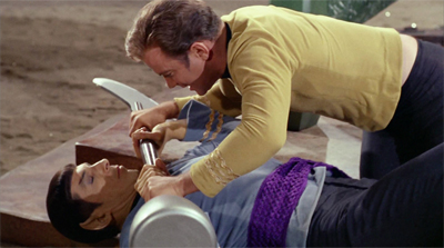Interestingly, the male Vulcan can “release” the female from their bond, but the female cannot release herself. Sadly, this is not an unusual dynamic in classic Star Trek, where female characters frequently exists as pawns to be manipulated and controlled in games run by male characters. Amok Time just makes this more overt than it is in episodes like Who Mourns for Adonais? or What Are Little Girls Made Of?