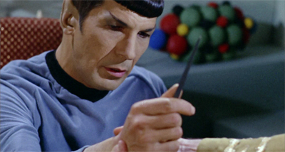 2. He has a magnificent mind. Spock knows nearly everything, and he’s capable of figuring things out incredibly quickly. He can do complex calculations in his head even while doing something else at the same time. He doesn’t have Kirk’s occasional flashes of tactical genius, but his raw intelligence is astonishing.