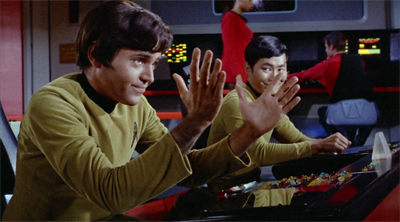 Still, Amok Time does demonstrate some of Chekov’s potential appeal. Sitting at the helm and navigation station at the front of the bridge, he provides somebody to whom Sulu can talk. The cutaways to Sulu and Chekov add some nice levity to Amok Time. However, the show could equally have done scenes like that with Uhura, which would have given Nichelle Nichols something to do beyond opening hailing frequencies. So adding Chekov does seem like a very cynical move from a show that isn’t quite sure what to do with the supporting cast it already has.