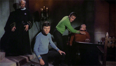 It’s a small touch that make Wolf in the Fold feel like a product of the Gene L. Coon era. Kirk can’t protect Scotty because the Federation needs Argelius. “Argelian hospitality is well-known, as well as its strategic importance as a space port,” Kirk reflects. Jaris responds, “Yes. I believe it’s the only one in the quadrant.” Later on, when Kirk seems to hesitate, Jaris leans pretty heavily on this point. “You’re behaving very much like a man who is desperately trying anything to save his friend. Would you be as desperate to save Argelius as a space port for your Starfleet?”