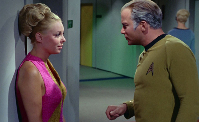The Deadly Years is particularly questionable when it comes to the portrayal of its female characters. There are a lot of unnecessary odds-and-ends in the script, and the two major female characters rank among them. Galway might dress in blue, but she is a glorified red shirt – she exists to die so that we might take the threat seriously. This feels largely redundant, given we have the research staff to serve the same plot function.