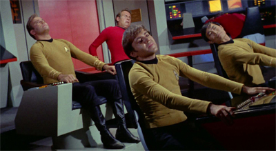 Despite these awkward elements including the female characters, there is an interesting conclusion to The Deadly Years. It turns out that Chekov is not affected by the accelerated ageing. In fact, he holds the cure for Kirk and the rest of the team. Chekov is a character who was introduced into Star Trek so as to appeal to youth culture. He was very consciously modeled on Davey Jones from The Monkees. There is something quite symbolic about the idea that Kirk and the team save themselves from growing old by tapping into youth culture.