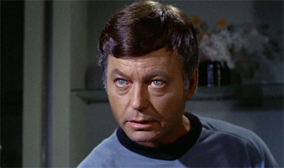 “Give us some more blood, Chekov,” he mimics. “The needle won’t hurt, Chekov. Take off your shirt, Chekov. Roll over, Chekov. Breathe deeply, Chekov. Blood sample, Chekov. Marrow sample, Chekov. Skin sample, Chekov. If I live long enough, I’m going to run out of samples.” To this, Sulu finds himself playing the straight man. “You’ll live,” Sulu remarks, in a wonderfully disinterested way. You get the sense that he has gotten used to his co-worker’s eccentricities. “Oh, yes,” Chekov replies. “I’ll live, but I won’t enjoy it.”