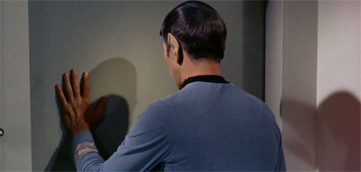 “I have this notion that Vulcan society emphasizes tactile contact,” I told him, “and I’m always on the lookout for opportunities to use the hands and fingers, as a symbol, a benchmark of the race.” I talked about the Vulcan mind meld, and demonstrated the salute–which, fortunately, came easily to Mark.