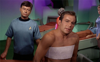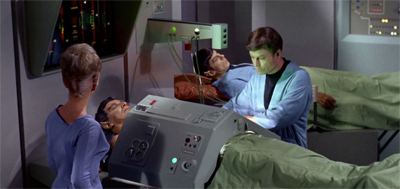 Even Spock’s involvement with the treatment plays into the metaphor. “We’ve run a number of blood tests on Mister Spock,” Nurse Chapel observes. “It isn’t true Vulcan blood either. It has human blood elements in it.” As ever, Spock’s human half prevents him from being the Vulcan that his father wants (and needs) him to be. Naturally, it is Spock who proposes a solution. “It should be possible to filter out the human factors.” You could argue that Spock has been doing that all his life.