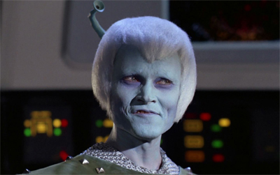• Andorians are freakin’ awesome. It’s a shame that (I believe) Rick Berman banned them from the twenty-fourth century shows, because that design is just beautiful and should be one of the iconic Star Trek designs imprinted on the collective consciousness, as opposed to simply a fan favourite. (Much like everybody knows what a Klingon or a Vulcan looks like.)