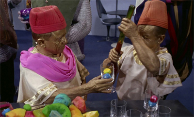 “They put some money into that, to the tune of the costumes, the makeup, masks… the food spred out that was dyed all different colours… and so on. You always did trade-offs in that sense. If you went on location, you had to give away your costume and makeup. If you stayed on the ship, you could do more.”