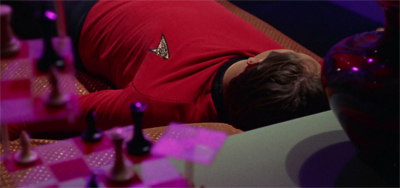 I think the thing I like most about “Obsession” is the view it gives us of what Kirk’s senior officers can do if he starts behaving badly. That scene in Kirk’s quarters where McCoy comes in and tries to talk to Kirk, only to get stonewalled, so the door opens to reveal Spock waiting in the corridor, is an interesting one. It reveals that there’s a procedure in the manual for the CMO and First Officer to question the captain and to relieve him of command if the answers show him to be incapacitated. That extends our understanding of Starfleet procedure and also shows us that although these three men are very close friends, they also all take their duties seriously (even McCoy, who often seems like something of a loose cannon). It shows what a fine line they all have to walk, in being friends and officers at the same time.