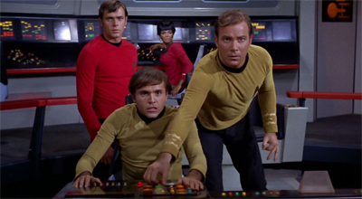 And in spite of the intended parallels to “Moby Dick,” I think the way that Kirk revisits his understanding of what happened eleven years ago and the way in which he projected his own failure onto young Garrovick shows some psychological sophistication. Kirk came down hard on Garrovick for his OWN failing, and Kirk only truly realized that his own “failing” had not been a failing at all when he comforted Garrovick about the same issue. This IS the way in which people often work, and if you forget the “Moby Dick” jazz for a minute and take the episode on its own merits, it does have something to say — something useful, even.