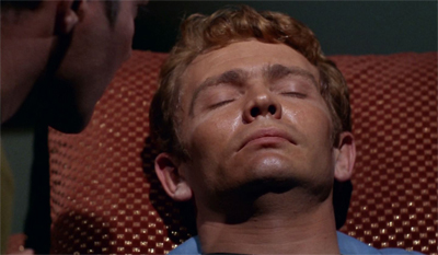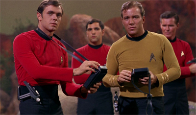 As if to underscore this point, Obsession contains a rather infamous continuity gaffe. Actor Eddie Paskey was the show’s stand-in for William Shatner, but he also worked as one of the show’s generic crew members. He wore all three department colours during his time on the series. He was even named as “Lieutenant Leslie” in The Conscience of the King. He got a more thorough (although still brief) interaction with Kirk in This Side of Paradise.