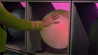 The production on Return to Tomorrow is quite impressive. The design of Sargon is very cost-effective, but it is also iconic. The idea of an entire civilisation preserved in simple white spheres is incredibly memorable – the design recalls the “head museum” in Futurama, and it seems unlikely to be a coincidence. Like the Gamesters from The Gamesters of Triskelion, Sargon is the kind of eccentric realised-on-a-tiny-budget alien that people think about when they think of Star Trek.