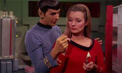 Still, there is something quite pointed in Thalassa’s plea to keep Mulhall’s body. After all, the audience knows that Kirk has to be Kirk and Spock has to be Spock by the end of Return to Tomorrow. Mulhall is a guest star, and so she is disposable; she is even wearing a red uniform. Thalassa tries to bargain with McCoy. “It happens to belong to a young woman,” McCoy insists. Mulhall cuts across him, “Who you hardly know. Almost a stranger to you.”