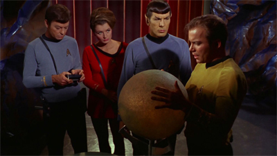 And yet, despite the fact that the actual plotting and storytelling of Return to Tomorrow is bland and generic, there is a sense that is an episode that is fundamentally about Star Trek. It is an enunciation of some of the franchise’s core themes. Return to Tomorrow is an episode about exploration, in multiple senses. The most obvious is the literal sense. We are told that the Enterprise is “hundreds of light years past where any Earth ship has ever explored” and that it will take Kirk’s logs “over three weeks” to reach Starfleet “at this distance.”