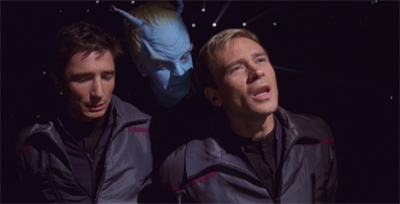 The series spends a great deal of time convincing the audience that everything is safe, making it harder to get on board when the show insists that everything is up in the air. In many respects, T’Pol’s subplot here feels like something of a retread of all those “Wesley almost goes to the Academy but then doesn’t” plots from the first three years of The Next Generation. Television drama has come a long way in the years since those plots, and Enterprise is a show that might actually have the freedom to follow through on a threat like this, if only for a few episodes.