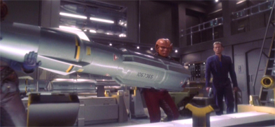 6. I’ve always liked those Ferengi energy whips. They were a simple but distinctive way of separating the Ferengi from other Star Trek aliens, rather than just another boring disruptor. It’s also interesting that, while Quark argues with Sisko that Ferengi are superior because they never practiced atrocities like slavery, they are quite willing to sell people into slavery, and their whips are something I would say are strongly associated with slave masters.