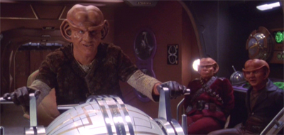 • Well the writing on Enterprise was pretty consistently thin, IMO. It’s mildly amusing to see T’Pol trick the Ferengi by hiding the equipment. Whereas it’s delightful to watch Quark and Brunt argue about giving workers vacation time!