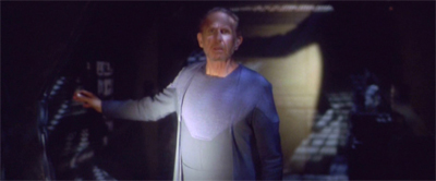 The audience is clearly meant to recognise him. While drawing the audience’s attention to his character undermines the suspense a bit – as it invites the audience to wonder why the show is so interested in that supporting character – it serves to emphasise this guest appearance. The camera doesn’t seem to be focusing so much on Chief Engineer Ezral as it is focusing on former Star Trek lead actor Rene Auberjonois.