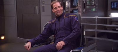 Is making the character stupid the only way the writers know how to make the guy relateable? Bakula is an engaging actor; I’d think that he could make us feel that Archer was a regular guy without making him a freaking idiot. And is having them make stupid mistakes the only way the writers can get across the idea that humans are beginners at space exploration? I’d love a lot more of the “Wow, that’s so cool” moments, and a lot fewer of the “I will do something that even my grandmother should know is dumb” moments.