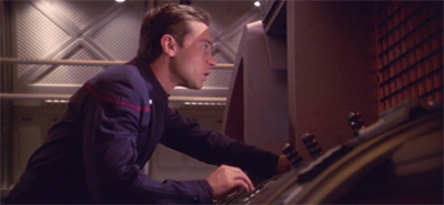 The plot of Fallen Hero is remarkably straightforward. It is a very familiar Star Trek plot, with the crew of the series accommodating an alien diplomat. Every Star Trek series has played with that basic template in one form or another, often multiple times in the same season. Fallen Hero is much more straightforward than most of those “ferrying diplomat” stories; often those episodes use the diplomats or aliens as an excuse to tell a particular type of story. With Fallen Hero, the story is pretty simple. Archer has been assigned to ferry a Vulcan diplomat from a planet to a Vulcan ship. Some aliens try to stop him.