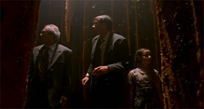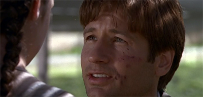 That said, there are a number of interesting aspects of Herrenvolk. For example, the episode goes to a great deal of trouble to provide the sort of nuts-and-bolts cliffhanger resolution that was lacking from The Blessing Way. Both Anasazi and Talitha Cumi end with Mulder in great peril. Anasazi ended with Mulder almost burnt alive inside a railway car, while Talitha Cumi saw our hero facing down the implacable Alien Bounty Hunter.
