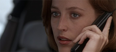 Here, Mulder leaves Scully with the (presumed dead) Bounty Hunter while he embarks on a trip with Jeremiah Smith. The episode explicitly references Mulder’s abandoning of Scully. “Stay out of his way, Scully, he doesn’t want to hurt you,” Mulder warns Scully about the Bounty Hunter as he pursues Smith. Later on, when Mulder asks where Scully is, she rather pointedly replies, “I’m right where you left me, Mulder. I’m sitting here in my car.” When he asks why, she answers, “Because you wouldn’t answer your phone and because I didn’t know what else to do.”