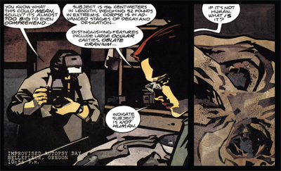 That is, in effect, the justification for Topps’ Season One series of comics. These deluxe double-sized comics would feature adaptations of early episodes drawing from the original shooting scripts and from the finished episode. They would allow readers a chance to journey back to the beginning of The X-Files and get a sense of where the show had started. After all, three years is a phenomenally long time in television. It is hard to believe that The Pilot and Herrenvolk are the same show.