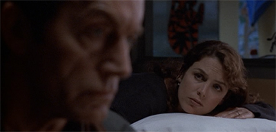 This brings up one of the recurring issues with Millennium in its first season. The show tends to link violence and sexuality, to the point where the series opens on a murderer’s blood-drenched fantasy at a Seattle peep show. To be fair, this link is understandable and justifiable; Carter has done his research, and sex and violence are frequently linked in real life cases like this. (Frank did work in “sexual homicide”, so it is his speciality.) However, watching the first season of Millennium as a whole, this union of sex and violence can occasionally feel a little exploitative and cynical. It’s not a problem with The Pilot per se, but it is an issue that builds up over the course of the season.